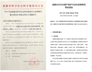 通过与地方政府乡村建设方面的合作,并及时进行成果转化,立项及完成成都市哲学社会科学研究中心资政服务能力建设专项重点项目1项.